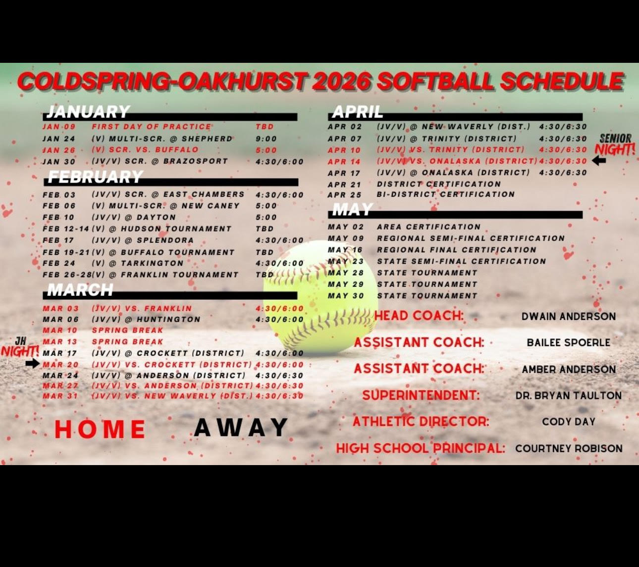 | 02/28/2026 | Tournament | Lovelady Lions | 6-0(L) | 6-4-1 |
