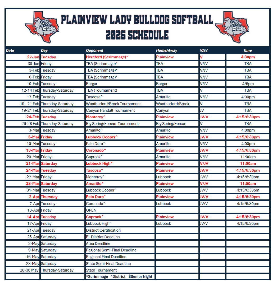 | 02/18/2026 | District | Lubbock Monterey Plainsmen | 20-1(L) | 3-3-0 |