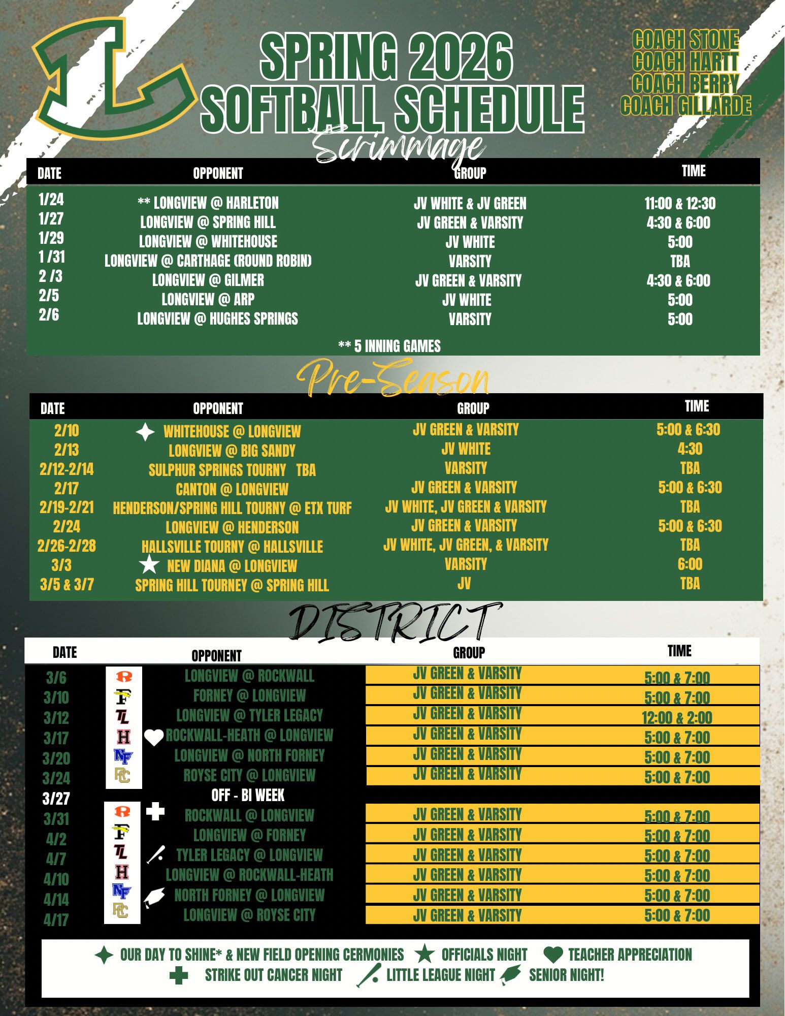 | 02/10/2026 | Regular | Nacogdoches Dragons | 6-5(L) | 0-1-0 |