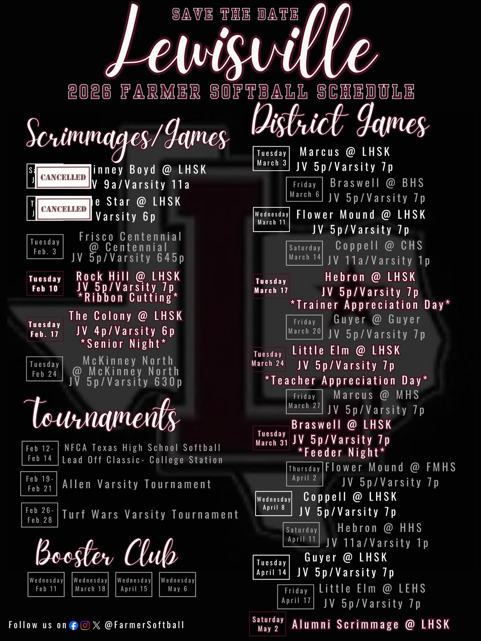| 02/23/2026 | District | Aubrey Chaparrals | 14-4(W) | 8-4-0 |